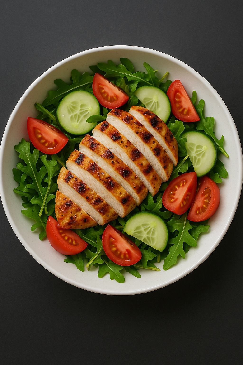 • Grilled chicken salad (mixed greens, cucumber, tomato)