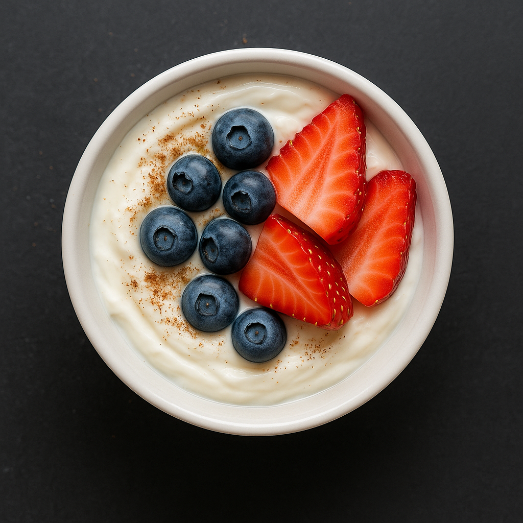 Light protein + berries to satisfy without overdoing it.